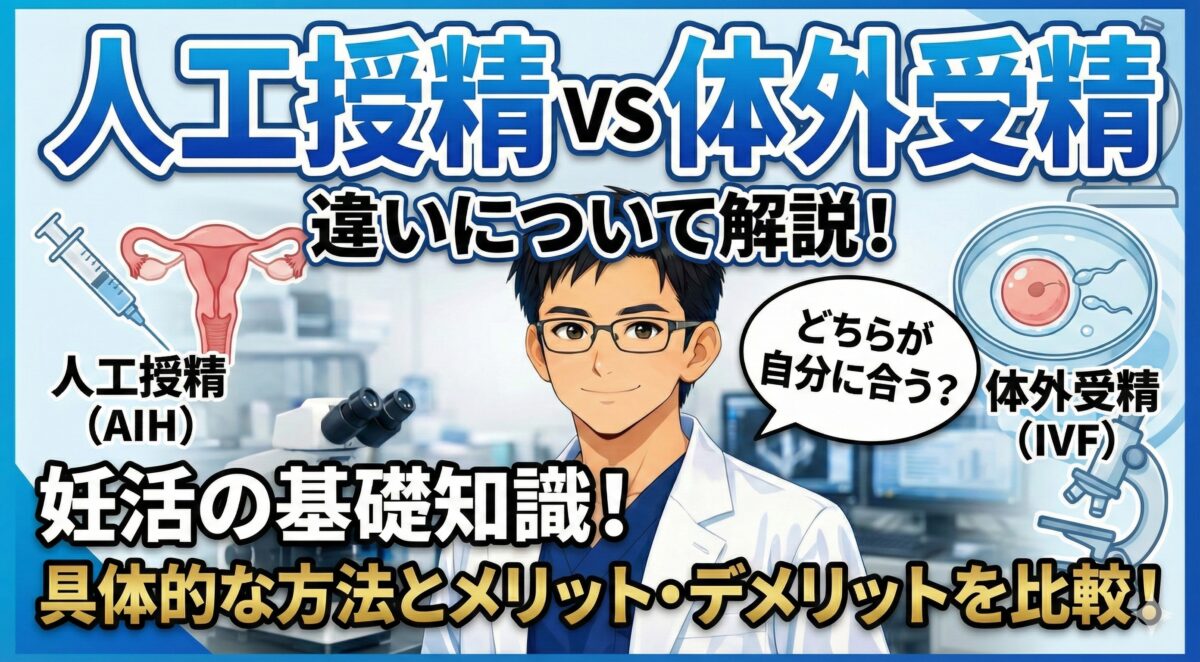 不妊治療を考え始めると、最初に出会う大きな分岐点が「人工授精(AIH)」と「体外受精(IVF)」の選択です。