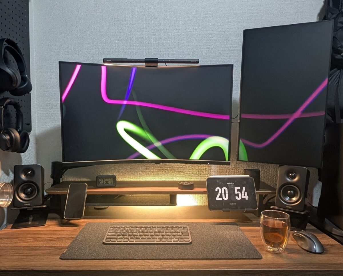この余裕が、複数のデバイスを機能的に配置することを可能にし、視覚的なノイズを消して集中力を引き出してくれます。